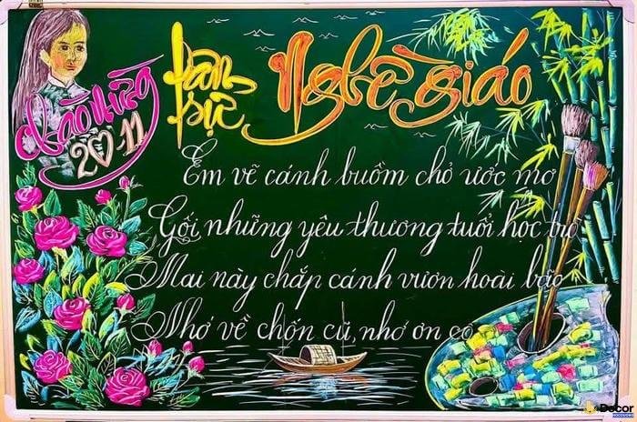 Hy vọng những ý tưởng trong decorhocduong mẫu trang trí bảng 20/11 đơn giản mới lạ 2025 sẽ giúp bạn tạo nên một không gian lớp học thật ý nghĩa và trọn vẹn trong ngày lễ đặc biệt này.
