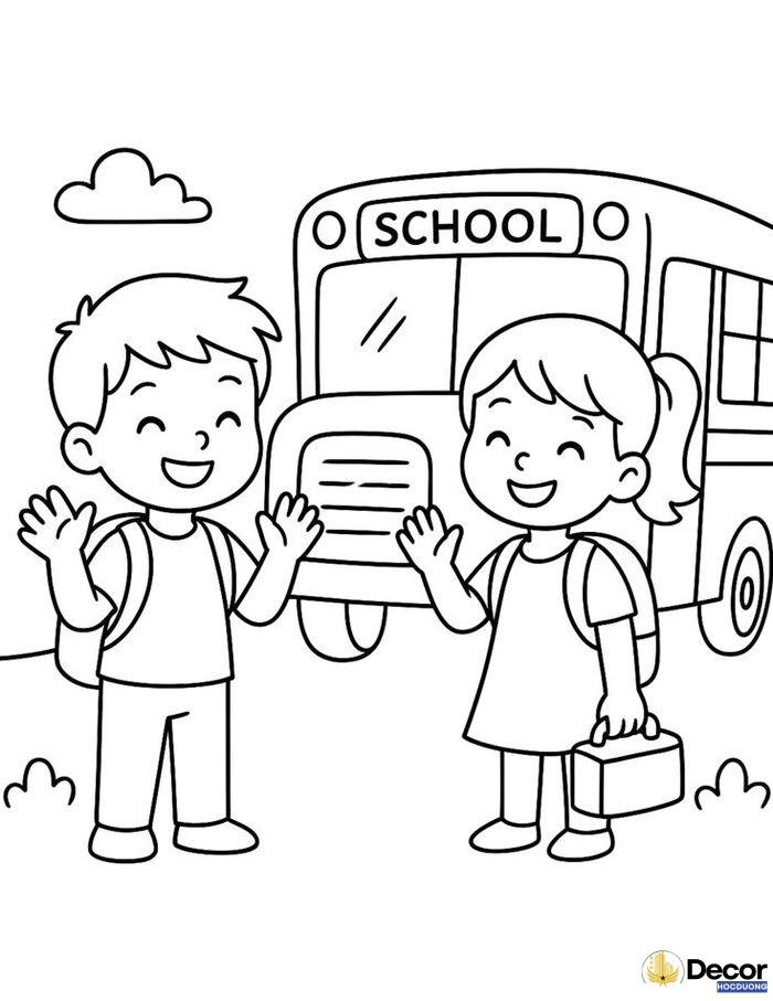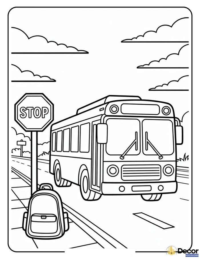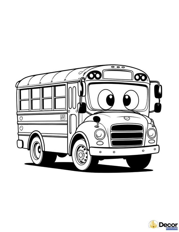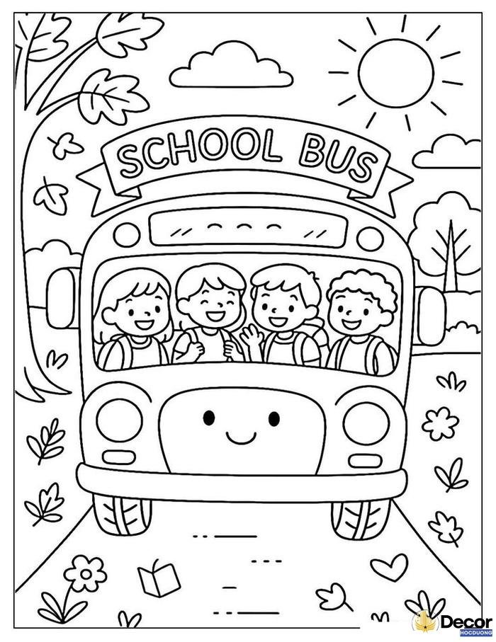 Mẫu tranh tô màu xe bus trường học quen thuộc